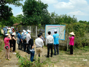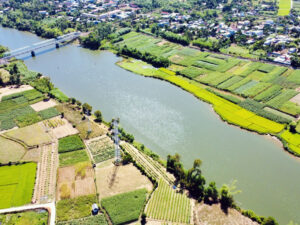 Làng Cà Ban cách trung tâm thành phố Tam Kỳ khoảng 5km về phía Nam. Nếu không đến Cà Ban bằng đường bộ, khách du lịch Quảng Nam có thể trải nghiệm đi bằng thuyền từ vườn Cừa (làng sinh thái Hương Trà) trong khoảng 20 phút để cập vào bến Gò tại làng Cà Ban. Nếu đi theo hành trình này, du khách có thể theo ghe lên đến tận hồ Phú Ninh để khám phá hệ sinh thái tự nhiên đặc sắc.